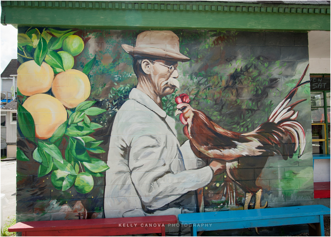 This is a detail of the mural on the Fish Building in Downtown DeLand. The biggest challenge as I started to paint was getting my brush down into the rough texture on the masonry wall.