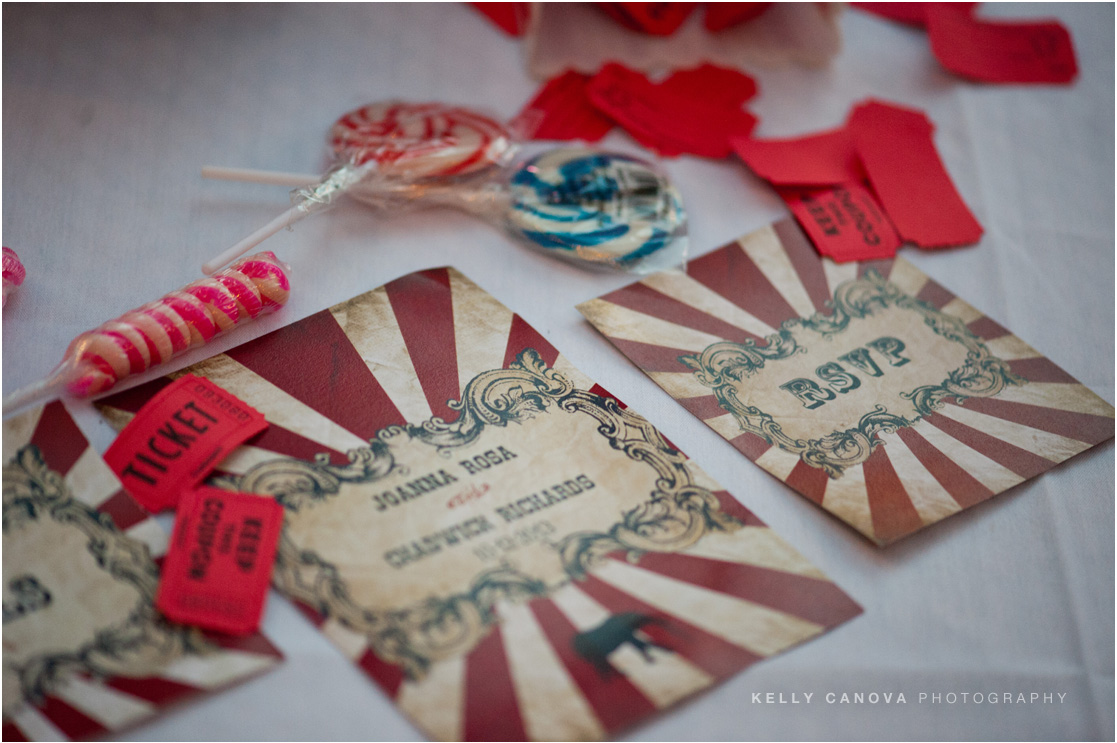 The couple’s vintage carnival wedding invitations from My Big Designs